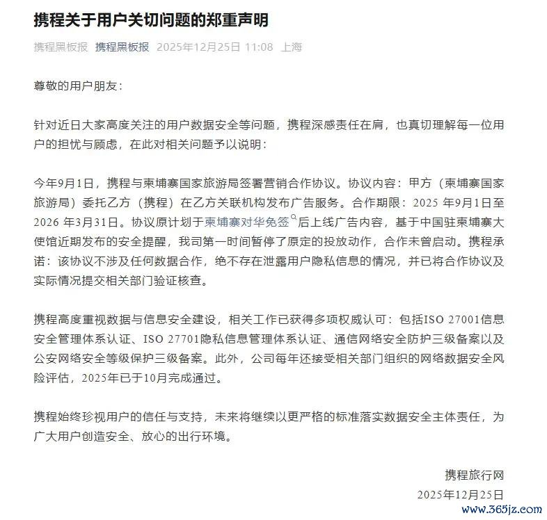 面临这场“信任雪崩”,携程终于出来“贵重声明”了。声明一如既往地“严谨”:和洽是纯告白,不涉数据;投放已暂停,绝无露馅;公约已上交,接待核查。